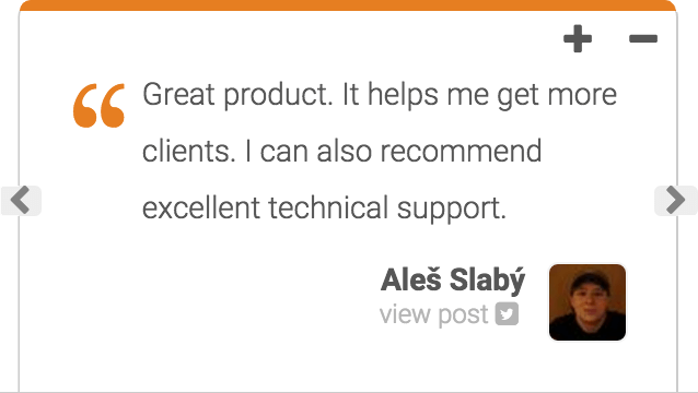 By implementing Repuso and showing your visitors satisfied testimonials from real persons, you will boost the conversion rate of your website!